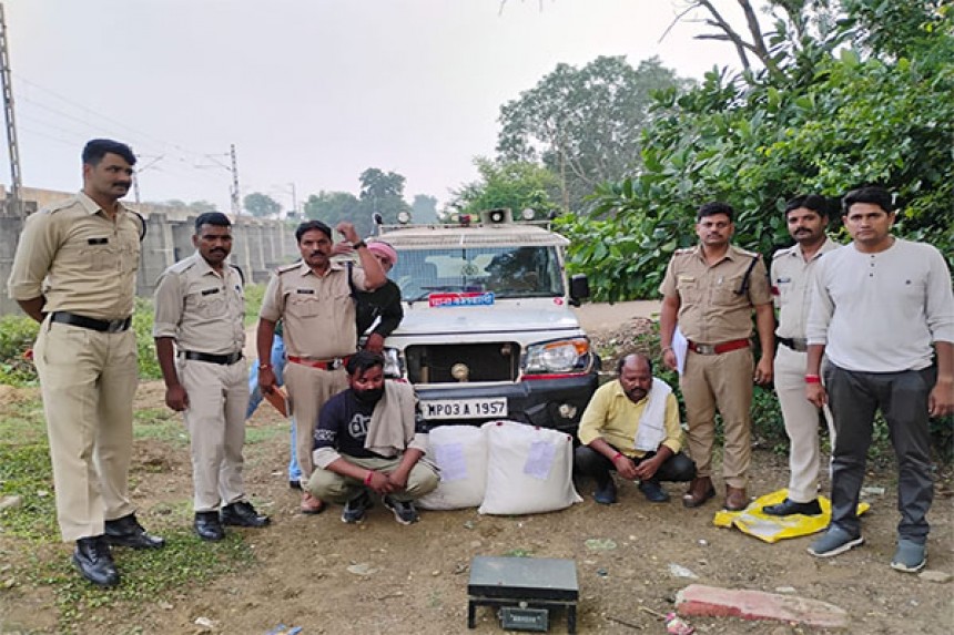 सरगुजा। छत्तीसगढ़ में संभागीय आबकारी उड़नदस्ता सरगुजा (Flying Squad Surguja)ने थाना सीतापुर क्षेत्र अंतर्गत राधापुर बैरियर के पास कार्रवाई करते हुए 14 किलो गांजा के साथ दो आरोपियों को गिरफ्तार किया है। मामले में तीन अन्य आरोपी मौके से फरार हो गए, जिनकी तलाश जारी है। शनिवार की शाम मिली आधिकारिक जानकारी के अनुसार, 03 अप्रैल की शाम को मुखबिर से सूचना प्राप्त हुई थी कि रायगढ़ और जशपुर जिले के कुछ व्यक्ति राधापुर बैरियर के आसपास मादक पदार्थ की आपूर्ति करने वाले हैं। सूचना के आधार पर टीम ने सिविल ड्रेस में क्षेत्र में पहुंचकर निगरानी शुरू की।