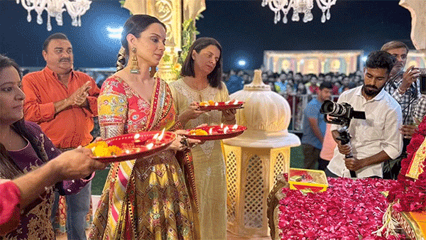 डांडिया नाइट में शिरकत करने के साथ-साथ कंगना ने आरती भी की. सामने आई तस्वीरों में कंगना हाथों में पूजा की थाली लिए नजर आ रही हैं. बता दें, 15 अक्टूबर को फिल्म तेजस का पहला गाना 'जान दा' रिलीज हुआ है.