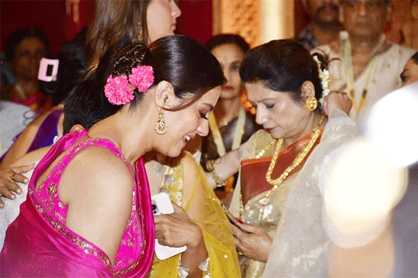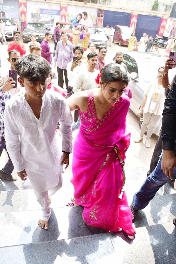 काजोल दुर्गा पूजा में शामिल होने के लिए काजोल गुलाबी साड़ी के साथ मैचिंग स्लीवलेस ब्लाउज में नजर आईं. उनकी साड़ी पर सिल्वर वर्क था. उन्होंने अपना लुक मेकअप, बिंदी और झुमके के साथ पूरा किया. उन्होंने अपने बालों का जूड़ा बना रखा था और उस पर फूल लगाए हुए थे. पूजा पंडाल में उन्हें बेटे युग के साथ एंट्री करते हुए देखा गया