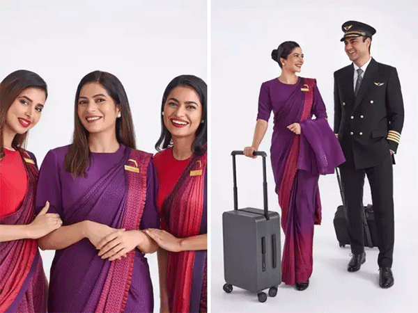 इसे मशहूर फैशन डिजाइनर मनीष मल्होत्रा (Manish Malhotra) ने डिजाइन किया है। कई मशहूर हस्तियों के लिए कपड़े डिजाइन कर चुके मनीष मल्होत्रा ने अपने सोशल मीडिया अकाउंट (social media account) पर केबिन क्रू और पायलटों के लिए डिजाइन की गई वर्दी की पहली झलक भी साझा की। इस फोटो में महिला केबिन क्रू सदस्य बैंगनी और भूरे रंग की साड़ी (purple and brown sarees) में नजर आ रही हैं, जबकि पुरुष क्लासिक ब्लैक सूट (classic black suits) में नजर आ रहे हैं। जबकि पायलट काले ब्लेज़र और ट्राउजर (classic black suits) में नजर आ रहे हैं।