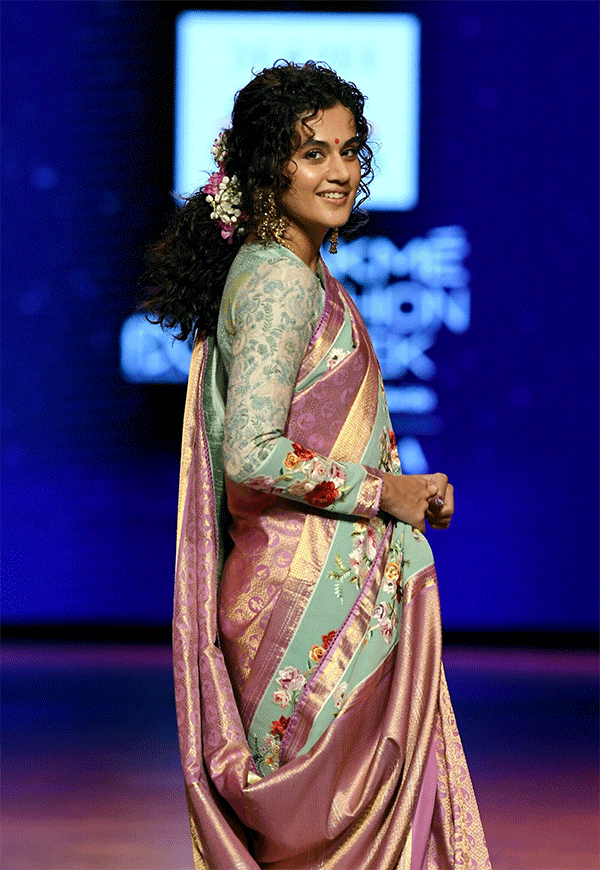 चाहे वह एक गाउन हो या एक पैंटसूट, तापसी क्लासिक ग्लैमर का सार पकड़ते हुए, फैशन का प्रदर्शन करती है।
