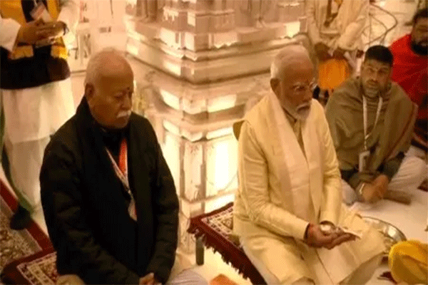 महापूजा की शुरुआत प्रधानमंत्री नरेंद्र मोदी और मोहन भागवत ने की।