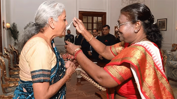 बजट पेश करने से पहले राष्ट्रपति ने वित्त मंत्री का मुंह मीठा कराया और उन्हें शुभकामनाएं दीं.