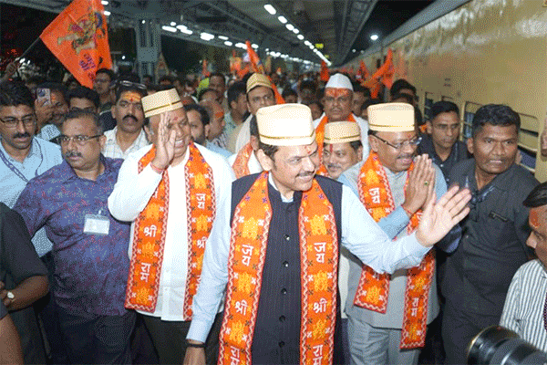 सोमवार को उपमुख्यमंत्री देवेन्द्र फड़णवीस (Devendra Fadnavis) ने 'आस्था ट्रेन' को हरी झंडी दिखाकर रवाना किया। भगवान राम के जयकारे के भक्तिमय माहौल के बीच पहली 'आस्था ट्रेन' सोमवार रात मुंबई छत्रपति शिवाजी महाराज टर्मिनस (Mumbai Chhatrapati Shivaji Maharaj Terminus) से अयोध्या (Ayodhya) के लिए रवाना हुई। हजारों राम भक्तों के उत्साह और खुशी के बीच इस 'आस्था ट्रेन' का शुभारंभ किया गया.