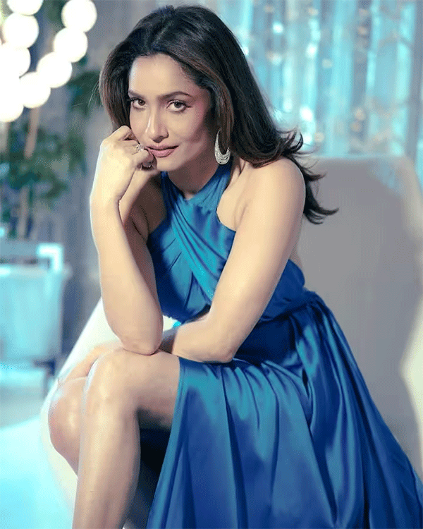 अंकिता ने हाल ही में अपना नया लुक शेयर किया है। इसमें वह बैकलेस हाई स्लिट इलेक्टिंग ब्लू शेड गाउन पहने नजर आ रही हैं।