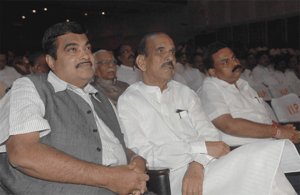 केंद्रीय मंत्री नितिन गडकरी के साथ एक कार्यक्रम में मनोहर जोशी।