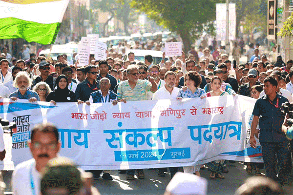 मुंबई में भारत जोड़ो न्याय यात्रा के समापन के बाद कांग्रेस नेता राहुल गांधी दक्षिण मुंबई में महात्मा गांधी के आवास मणि भवन गए. इस मौके पर राहुल गांधी की बहन कांग्रेस नेता प्रियंका गांधी भी मौजूद रहीं. इस मौके पर उन्होंने मणि भवन में राष्ट्रपिता महात्मा गांधी की जीवनी, चश्मे और विभिन्न चीजों से अवगत हुए. इसके बाद मणि भवन से न्याय संकल्प पदयात्रा निकाली गयी. महात्मा गांधी के परपोते तुषार गांधी भी कांग्रेस समर्थकों के साथ पैदल मार्च में शामिल हुए. यह पदयात्रा मणि भवन से अगस्त क्रांति मैदान तक निकाली गई.