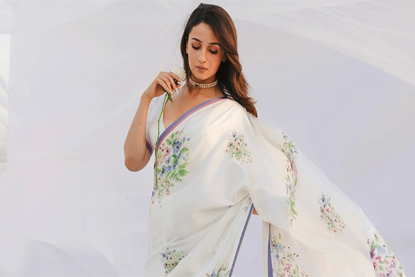 इस साड़ी के साथ आलिया ने गले में मोतियों और पन्ने का एक नाजुक चोकर पहना है और कोई अन्य आभूषण नहीं पहना है। लेकिन फिर भी उनका लुक बेहद रॉयल और अविस्मरणीय है
