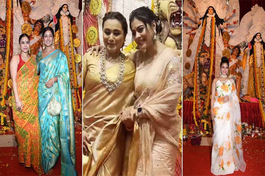 Kajol Rani Mukerji Durga Puja: दुर्गा पूजा की शुरुआत से ही रानी मुखर्जी और काजोल (Kajol and Rani Mukerji) का परिवार सोशल मीडिया पर चर्चा में बना हुआ है। काजोल और रानी मुखर्जी के साथ-साथ तनीषा मुखर्जी और इस पूजा में आने वाली हस्तियां भी सबका ध्यान अपनी ओर खींच रही हैं। खास बात यह है कि मुखर्जी परिवार की बहनों का लुक और उनकी साड़ियां खूब चर्चा में हैं। रानी और काजोल पूजा के दौरान तरह-तरह की साड़ियां पहनकर सभी को अपनी तारीफ करने पर मजबूर कर रही हैं।