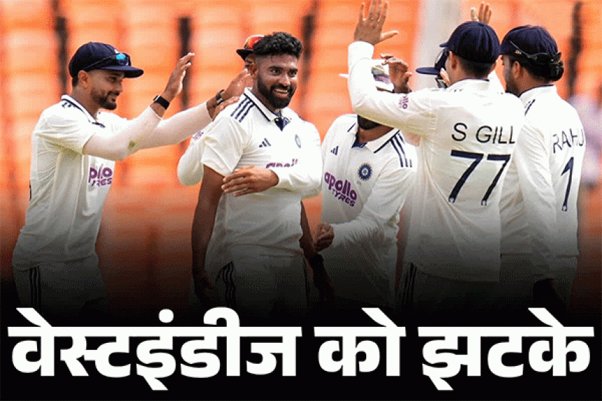 IND vs WI 1st Test Live Score: IND vs WI का मैच सुबह 9:30 बजे शुरू हुआ। पहले घंटे में मोहम्मद सिराज (Mohammed Siraj) पूरी तरह छाए रहे, उन्होंने तीन विकेट लिए। 12 ओवर के बाद वेस्टइंडीज का स्कोर 42/4 था। जसप्रीत बुमराह (Jasprit Bumrah) ने एक विकेट लिया। 13वें ओवर में नितीश कुमार रेड्डी (Nitish Kumar Reddy) को गेंदबाजी के लिए बुलाया गया। रोस्टन चेज़ (0*) और शाई होप (0*) इस समय क्रीज़ पर हैं। 10वें ओवर की आखिरी गेंद पर सिराज ने ब्रैंडन किंग को आउट किया। 10 ओवर के बाद, वेस्टइंडीज का स्कोर 39/3 है।
