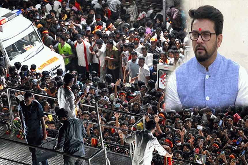 बीजेपी सांसद अनुराग ठाकुर ने पत्र में लिखा है, "भीड़ नियंत्रण उपाय: प्रशासन और कानून प्रवर्तन एजेंसियों ने कार्यक्रम से पहले और दौरान भीड़ को नियंत्रित करने के लिए क्या व्यवस्थाएं और सुरक्षा उपाय किए? कारण विश्लेषण: शुरुआती जांच के अनुसार, सुरक्षा उपायों के बावजूद त्रासदी की क्या वजहें या अप्रत्याशित परिस्थितियां थीं? मैं आपसे यह भी अनुरोध करता हूं कि कृपया राज्य सरकार द्वारा भविष्य में ऐसी घटनाओं को रोकने के लिए किए जाने वाले उपायों के बारे में बताएं।"शनिवार शाम तमिलनाडु के करूर में टीवीके प्रमुख विजय की राजनीतिक रैली के दौरान भगदड़ मचने से कम से कम 41 लोगों की मौत हो गई और कई अन्य घायल हो गए। मृतकों में महिलाएं और बच्चे शामिल थे, जबकि भगदड़ के दौरान बेहोश हुए लोगों को इलाज के लिए नजदीकी अस्पताल ले जाया गया।