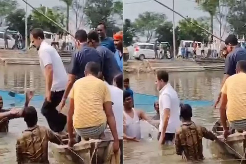गांधी ने इससे पूर्व बेगूसराय में चुनावी सभा को संबोधित किया।सभा के बाद श्री गांधी विकासशील इंसान पार्टी (Vikassheel Insaan Party) प्रमुख मुकेश सहनी,कांग्रेस नेता कन्हैया कुमार और बेगूसराय से कांग्रेस उम्मीदवार अमिता भूषण के साथ लगभग तीन किलोमीटर की दूरी तय करके पास के एक तालाब तक पहुँचे, जहाँ सुबह से ही तैयारियाँ चल रही थीं।जब राहुल गांधी वहां पहुंचे, तो ग्रामीणों ने उन्हें पारंपरिक तरीके से स्वागत किया।