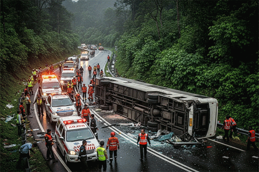 उन्होंने कहा, "बचाव कर्मियों को पलटी हुई बस में घुसना पड़ा, पीड़ितों तक पहुंच बनानी पड़ी और उन्हें अतिरिक्त सावधानी के साथ बाहर निकालना पड़ा।" उन्होंने बताया कि सभी पीड़ितों को सफलतापूर्वक बाहर निकाल लिया गया है और स्थानीय अस्पतालों में भेज दिया गया है।