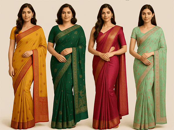 Choosing a Saree for the Bride : शादी का नाम आते ही लड़कियों के मन में एक ही बात आती हैं और वो है उसका लुक (Perfect Bridal Look) ! खासतौर पर साड़ी चुनना। बहुत से महिलाएं साड़ी चुनते समय कन्फ्यूज़ हो जाते हैं, 'क्या मैं मोटी दिखूंगी?' या 'क्या यह साड़ी मुझ पर सूट करेगी?'। शादी का दिन हर दुल्हन की ज़िंदगी का सबसे खास पल होता है। इस दिन हर कोई खूबसूरत (beautiful), कॉन्फिडेंट और सबसे अलग दिखना चाहता है। लेकिन सिर्फ़ महंगी या ट्रेंडिंग साड़ी (trending saree) चुनना ही काफ़ी नहीं है, अपने बॉडी शेप के हिसाब से सही साड़ी चुनना ज़्यादा ज़रूरी है। सही साड़ी, फैब्रिक, कलर और ड्रेपिंग स्टाइल दुल्हन के लुक को ज़्यादा ग्रेसफुल और परफेक्ट बना सकते हैं। अपनी हाइट, बॉडी शेप, शोल्डर स्ट्रक्चर या कमर के हिसाब से साड़ी चुनने से फिगर बैलेंस्ड दिखता है और खूबसूरती उभरकर आती है। मार्केट में पैठनी, कांजीवरम, सिल्क जैसी हज़ारों साड़ियां मिलती हैं (Choosing a Saree for the Bride), लेकिन सिर्फ़ महंगी (Bridal Saree Selection Tips by Body Shape) साड़ी पहनने का मतलब यह नहीं है कि आप खूबसूरत दिखें। साड़ी की खूबसूरती तभी उभरकर आती है जब उसे अपने 'बॉडी शेप' के हिसाब से चुना जाए। आइए देखते हैं कि शादी की अलग-अलग रस्मों के लिए अपनी बॉडी शेप के हिसाब से सही साड़ी कैसे चुनें, ताकि आपका 'ब्राइडल लुक' परफेक्ट हो।