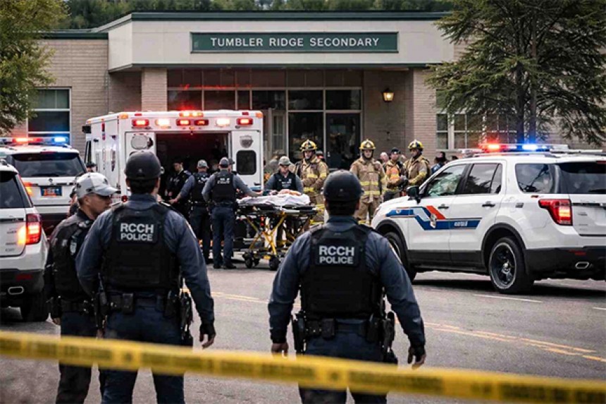 वैंकूवर: कनाडा के ब्रिटिश कोलंबिया (British Columbia, Canada) प्रांत के टम्बलर रिज (Tumbler Ridge) में एक उच्च विद्यालय और पास के एक घर में हुई गोलीबारी में संदिग्ध शूटर समेत 10 लोगों की मौत हुई है, जबकि 25 अन्य लोग घायल हुए हैं। रॉयल कैनेडियन माउंटेड पुलिस (RCMP) ने मंगलवार को बताया कि अधिकारियों ने स्थानीय समय के अनुसार अपराह्न करीब 1:20 बजे टम्बलर रिज माध्यमिक विद्यालय में गोलीबारी की सूचना पर कार्रवाई की। विद्यालय में छह लोग मृत पाए गए, जबकि एक व्यक्ति की अस्पताल ले जाते समय में मृत्यु हुई। वहीं, दो और पीड़ित एक घर से मिले, जिसके बारे में माना जा रहा है कि वह इस घटना से जुड़ा है।