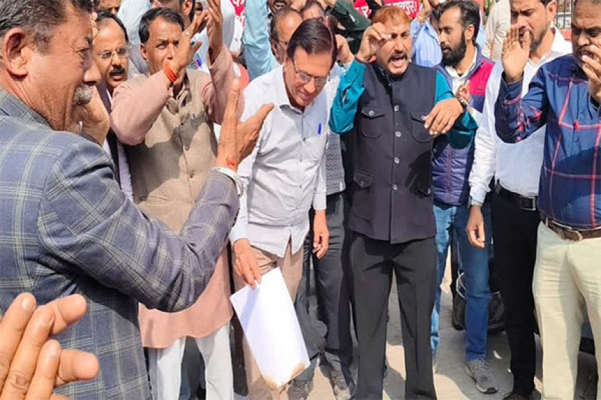 श्रीगंगानगर। राजस्थान सरकार द्वारा अखिल राजस्थान राज्य कर्मचारी महासंघ के 11 सूत्रीय मांगपत्र और सात संकल्पों पर राज्य बजट में कोई घोषणा नहीं करने से आक्रोशित कर्मचारियों ने गुरुवार को राज्य के सभी जिला मुख्यालयों पर विरोध प्रदर्शन करके बजट की प्रतियां जलायीं। इसी क्रम में आज शाम श्रीगंगानगर में जिला कलेक्ट्रेट पर महासंघ के जिलाध्यक्ष अशोककुमार कलवानिया (Ashok Kumar Kalwania) और जिला मंत्री राधेश्याम यादव (Radheshyam Yadav) के नेतृत्व में महासंघ के घटक संगठनों से जुड़े कर्मचारी विरोध स्वरूप उपस्थित हुए। अपनी मांगों को लेकर जोरदार नारेबाजी करके प्रदर्शन किया गया और बजट की प्रतियां जलायी गयीं।