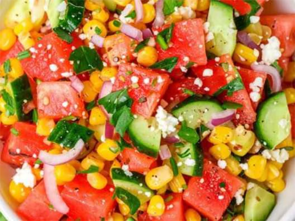 तरबूज और मक्के के दानों से बना यह सलाद शरीर को ठंडा रखेगा और आपकी जीभ को भी एक अनोखा और मसालेदार स्वाद देगा।
