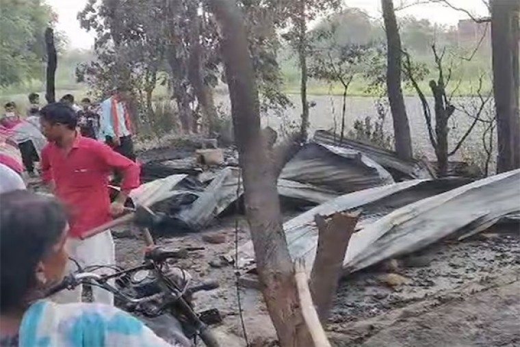 कुशीनगर. उत्तर प्रदेश के कुशीनगर जनपद के रामकोला थाने के उर्दहा गांव (Urdha village of Ramkola police station) में आग लगने से एक ही परिवार के 6 लोगों की मौत हो गई. मरने वालों में महिला और उसके 5 बच्चे शामिल हैं. बुधवार देर रात हुए इस हादसे से पूरे इलाके का मौहाल गमगीन हो गया. घटना के वक्त पिता नवमी घर के बाहर सो रहा था, जबकि उसकी पत्नी संगीता अपने 5 बच्चों को लेकर घर के अंदर सो (sleeping inside the house) रही थी. सोते समय आग लगने से संगीता और उसके 5 बच्चे घर के अंदर फंस गए, जिससे सभी की मौत हो गई. सूचना पाकर मौके पर पहुंची फायर बिग्रेड की टीम (fire brigade team) ने आग बुझाकर सभी शवों को बाहर निकाला. घटना की सूचना मिलने के बाद डीएम और एसपी रात में ही मौके पर पहुंच गए. सभी शवों को पोस्टमार्टम के लिए भेजने के बाद मामले की जांच का आदेश दिया गया है.