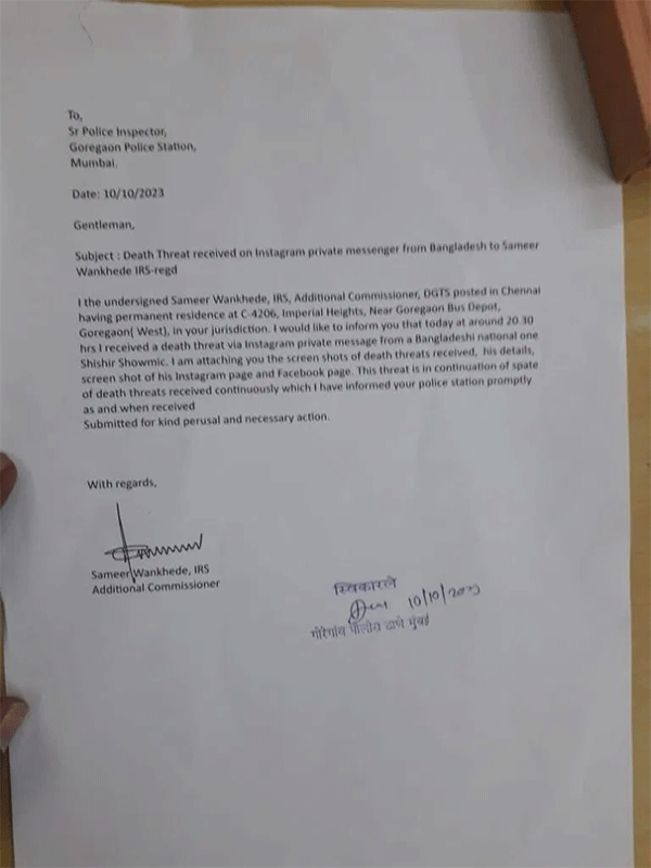 इसके बाद उन्होंने मुंबई के पुलिस कमिश्नर (Mumbai Police Commissioner) और गोरेगांव पुलिस थाने (Goregaon Police Station) को एक ईमेल भेजा और खतरे के बारे में सूचित किया. अधिकारी ने बताया कि गोरेगांव थाने में मामला दर्ज कर लिया गया है और जांच जारी है. बता दें कि समीर वानखेड़े एक आईआरएस ऑफिसर हैं. शाहरुख खान (Shahrukh Khan) के बेटे आर्यन खान को गिरफ्तार कर वो सुर्खियों में आए थे. इस समय वो चेन्नई में कार्यरत हैं.