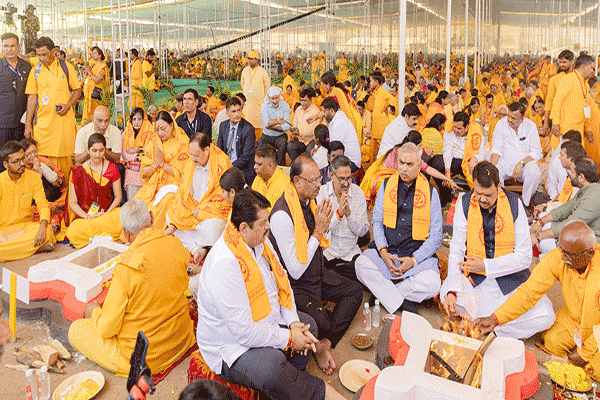 नवी मुंबई। अखिल विश्व गायत्री परिवार शांतिकुंज के मार्गदर्शन में अश्वमेध महायज्ञ (Ashwamedha Mahayagya) के दूसरा दिन का आरंभ विशिष्ट वैदिक मंत्रों संग देव आवाहन से हुआ। पर्यावरण संरक्षण, नारी सशक्तिकरण, नशा मुक्ति विश्व, मानव कल्याण, सहयोग-संगठन और सशक्त राष्ट्र निर्माण के संकल्प को पूरा करने के उद्देश्य से भारत सहित 50 देशों से आये करोड़ों /साधको ने 1008 हवन कुण्ड के महानुष्ठान अश्वमेध महायज्ञ में प्रत्यक्ष प्रतिभाग लिया। इस दौरान भाजपा अध्यक्ष जेपी नड्डा (JP Nadda) ने सपत्नीक महायज्ञ में प्रतिभाग किया और हवन कुंड (Havan Kund) में आहुति डाली। उनके साथ भाजपा राष्ट्रीय संगठन मंत्री शिवप्रकाश , महाराष्ट्र के उपमुख्यमंत्री देवेंद्र फडणवीस, कला एवं संस्कृति मंत्री सुधीर मुनगंटीवार न, कौशल एवं रोजगार केबीनेट मंत्री मंगल प्रभात लोढ़ा(Mangal Prabhat Lodha), महाराष्ट्र भाजपा अध्यक्ष चंद्रशेखर बावन कुड़े, भाजपा मुंबई महानगर अध्यक्ष आशीष शेलार, बॉलीवुड गीतकार समीर, गायक शंकर महादेवन, संगीत एवं गायक हिमेश रेशमिया और टीवी सीरियल महाभारत में भगवान लक्ष्मण की भूमिका निभाने वाले अभिनेता सुनील लहरी सहित बड़ी संख्या में अन्य गणमान्य अतिथियों ने भी आहुति डाली। वैदिक मंत्र व गायत्री मंत्र के लगातार हो रहे उच्चारण से वातावरण भक्तिमय हो गया है। बड़ी संख्या में स्थानीय निवासी कार्यक्रम में बढ़-चढ़कर हिस्सा ले रहे हैं, जिनमें बच्चे बूढ़े और महिला व पुरुष सभी शामिल है। विश्व गुरु भारत हो, चलो कुछ जतन करें के संगीतमय जयघोष के मध्य इन दिनों महानगरी मुंबई में धर्म-आध्यात्म की पावन सरिता बह रही है। पूरा शहर वासंती उल्लास से सराबोर है। मानों मायानगरी का कोना-कोना अखिल विश्व गायत्री परिवार (All World Gayatri Family) के आध्यात्मिकता और सामाजिक सरोकार के संकल्प को पूर्ण करने में अपनी आहुति दे रहा है।