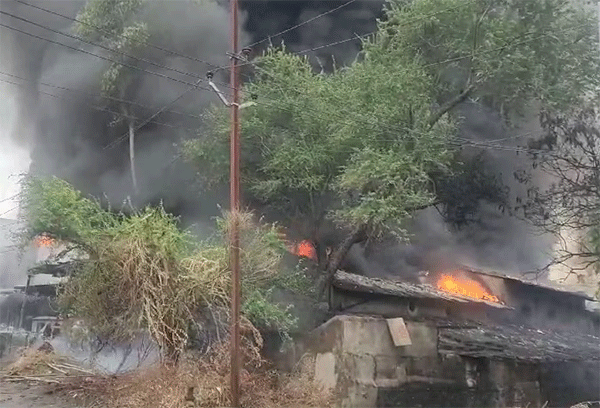 दमकल विभाग के कर्मचारी दो घंटे से आग पर काबू पाने की कोशिश कर रहे हैं