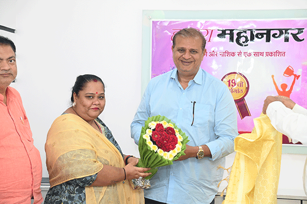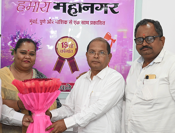 और महानगर परिवार काे वर्षगांठ की बधाई दी। अतिथियों का स्वागत ‘हमारा महानगर’ की निर्देशिका गीता सिंह, कायर्कारी संपादक राघवेन्द्रनाथ द्विवेदी, स्थानीय संपादक आदित्य दुबे, संवाददाता जीतेन्द्र मिश्रा एवं ‘हमारा महानगर’ के कल्याण प्रतिनिधि महेश द्विवेदी ने किया ।