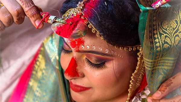 यदि बीच में भांग लगाकर सिन्दूर लगाना हो तो केवल तरल सिन्दूर वह लुक नहीं देगा। इसलिए बालों को बीच से बांट लें और पहले लिक्विड सिन्दूर लगाएं और फिर सूखा सिन्दूर लगाएं। ऐसा करने से सिन्दूर टिका रहेगा और पसीने के साथ नहीं बहेगा।