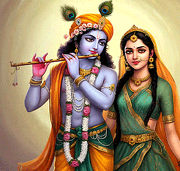 एक तरफ सांवले कृष्ण, दूसरी तरफ राधिका गोरी