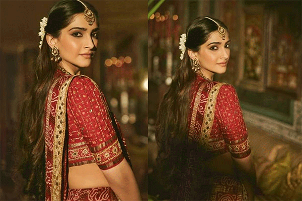 अगर आप सोनम कपूर की तरह गजरा भी लगाएंगी तो बेहद खूबसूरत लगेंगी। आगे के हिस्से पर मांगटीका लगाने के बाद आधे बालों को पिन से फिक्स करें और उसमें गजरे की दो स्टिक बांध लें। यह बैंग हेयरस्टाइल भी बहुत आसान है और कुछ ही मिनटों में किया जा सकता है।