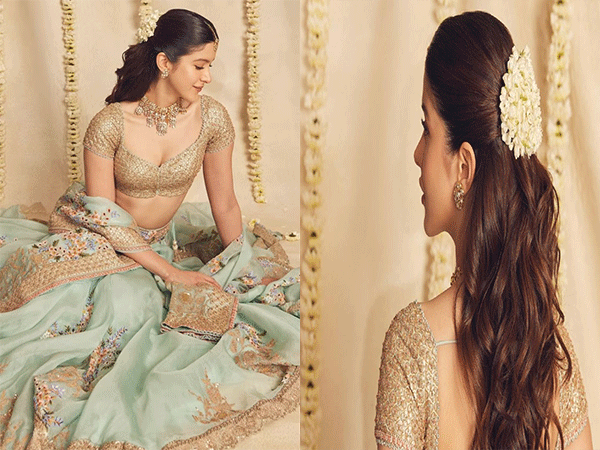 अगर आपकी नई-नई शादी हुई है तो आप कुर्ते या लहंगे के साथ शनाया कपूर जैसा हेयरस्टाइल ट्राई कर सकती हैं। पीछे के बालों को कर्ल करें, आगे के बालों को स्लीक लुक दें। आधा टक करें और गजरा लगाएं, गजरा लगाने के लिए आधे बालों में नकली जूड़ा लगाएं और गजरा लगाएं। आप अपने बालों को कर्ल करने की जगह नकली घुंघराले बालों का भी इस्तेमाल कर सकती हैं।