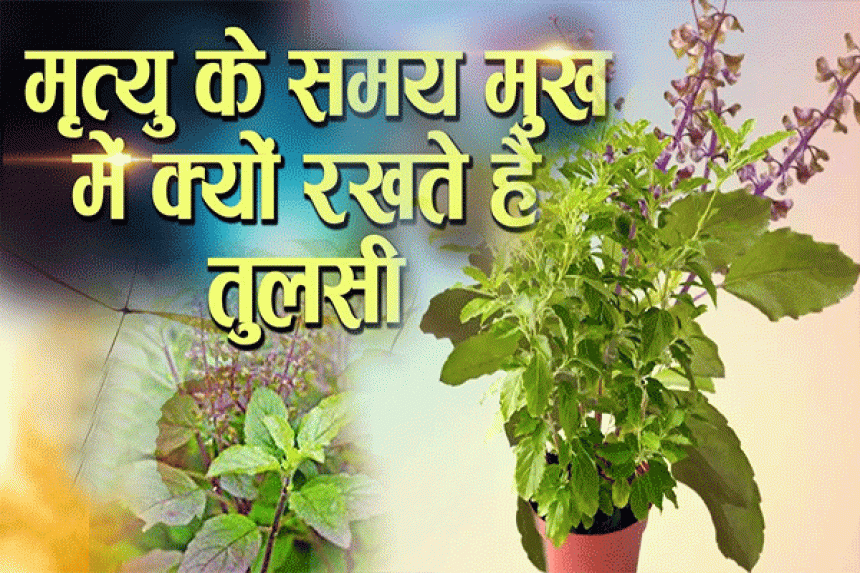 मृत्यु के समय तुलसीपत्र को मुंह, माथे और दोनों कानों में रखा जाता है। धार्मिक मान्यता है कि आत्मा वैकुण्ठ में जाती है।