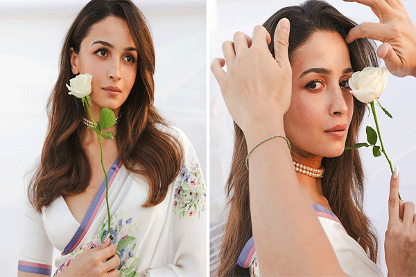 आलिया ने हाथों में सफेद गुलाब लेकर कुछ तस्वीरें खिंचवाईं जो किसी शाही तस्वीर की तरह लग रही थीं। आलिया का ये लुक क्लासी लग रहा है