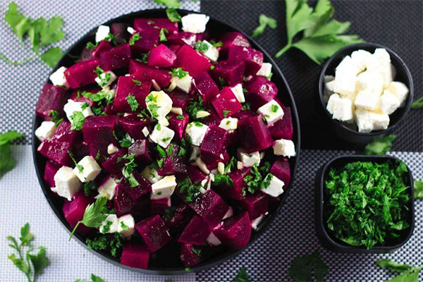 सामग्री: एक बड़ा चुकंदर छीलें, दही, नमक, स्वादानुसार चीनी, ड्रेसिंग के लिए सामग्री। विधि: कच्चे चुकंदर को छीलकर कद्दूकस कर लें। हरी मिर्च को बारीक काट लें। एक कटोरे में कद्दूकस किया हुआ चुकंदर लें और उसमें मिर्च डालें। फिर इसमें छाना हुआ दही और स्वादानुसार नमक और चीनी मिलाएं। इसमें घी और जीरा डालें। चुकंदर का सलाद तैयार है।