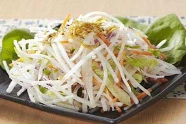 सामग्री: दो मध्यम आकार की कद्दूकस की हुई मूली, बारीक कटी हरी मिर्च, स्वादानुसार नमक और चीनी, नींबू का रस और धनिया। विधि: मूली के छिलके को हाथों से निचोड़कर पानी निकाल दें। इस बैग में सभी सामग्री डालकर अच्छी तरह मिला लें। सलाद तैयार है. यदि चाहें तो मसाला डालें। यह सलाद नींबू के रस की जगह दही के साथ भी बहुत स्वादिष्ट लगता है।
