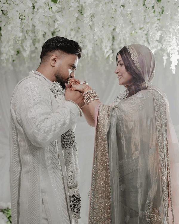 पिंक ब्लाउज़ और सिर पर मैचिंग पिंक दुपट्टा। रॉकी और हिना एक दूसरे को प्यार से देखते हुए नज़र आ रहे हैं। दोनों के हाथ एक दूसरे के हाथों में, आँखों में आँखें... और चेहरे पर मुस्कान है।