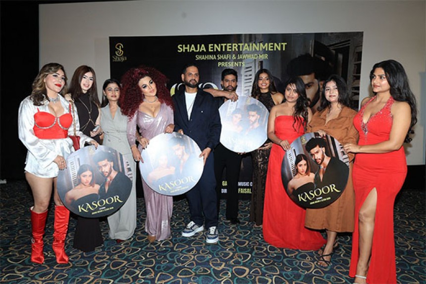 मुम्बई। मुख्य अतिथि राखी सावंत (Rakhi Sawant) द्वारा प्रोड्यूसर शाहिना शफी और जव्वाद मीर (JD) का म्युज़िक वीडियो "कसूर" (Kasoor) रेडबल्ब स्टूडियो, अंधेरी पश्चिम, मुंबई में भव्य रूप से लॉन्च किया गया। शाजा एंटरटेनमेंट के बैनर तले बने इस डांस नंबर में अरहान अंसारी और अलीशा खान ने ऐक्टिंग की है। इस अवसर पर बॉलीवुड से विशेष अतिथि कंगना शर्मा, रीवा अरोरा, हेमा शर्मा, सोशल मीडिया influencer अरबाज पटेल, गायक सैफ अली मौजूद थे। इस गीत के सिंगर नाज़ औलख और प्रतीक गांधी हैं जबकि संगीतकार प्रतीक गांधी, गीतकार रागिनी महाजन है। राखी सावंत ने कहा कि गाना कसूर बहुत अच्छा है। अरहान गीत में हॉट दिख रहे हैं। मेरी अपील है कि नए लोगों को भी प्रोड्यूसर जेडी काम दें। शाजा एंटरटेनमेंट से मैं भी जुड़ी हुई हूँ। मेरे भी कुछ गाने इस प्रोडक्शन हाउस से आ रहे हैं. साथ ही मैं इनके साथ एक टॉक शो भी कर रही हूं।" जेडी ने बताया कि वह खुद एक गीतकार भी हैं। उनके लिखे हुए 15-20 गाने इस बैनर तले आएंगे. राखी सावंत के साथ 4 गाने आने वाले हैं। प्रोड्यूसर शाहिना शफी ने कहा कि मेरे नाम और जव्वाद मीर (जेडी) के नाम के शुरुआती अक्षरों को लेकर हमने अपने प्रोडक्शन हाउस Shaja Entertainment का नाम रखा है. कसूर डांस नम्बर है. इसके बाद हमारा नेक्स्ट गीत राखी सावंत का गीत है जो जल्द रिलीज किया जाएगा."