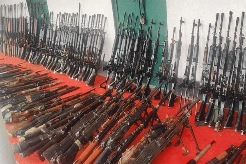 इम्फाल: सुरक्षा बलों (Security forces) ने इम्फाल पश्चिम और काकचिंग जिलों में चलाए कई समन्वित अभियानों के तहत विभिन्न प्रतिबंधित समूहों से जुड़े तीन उग्रवादियों को गिरफ्तार किया और हथियारों एवं गोला-बारूद का एक बड़ा जखीरा बरामद किया (Huge Cache of Wweapons Recovered) है। पहले अभियान में, मणिपुर पुलिस, केंद्रीय रिजर्व पुलिस बल (CRPF) और असम राइफल्स की एक संयुक्त टीम ने इम्फाल पुलिस थाना अंतर्गत सागोलबंद नेपरा मेनजोर लेइकाई स्थित एक किराए के मकान से एक प्रतिबंधित संगठन के स्व-घोषित मेजर को गिरफ्तार किया। गिरफ्तार व्यक्ति पर 2017 में साजिक तंपक में असम राइफल्स के चार जवानों पर घात लगाकर किए गए हमले के सिलसिले में वांछित था।