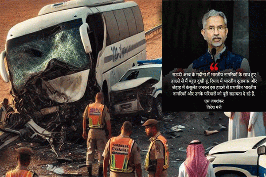 Medina Bus Accident : विदेश मंत्री डॉक्टर एस जयशंकर (External Affairs Minister Dr. S. Jaishankar) ने सऊदी अरब के मदीना में एक बस दुर्घटना (Medina Bus Accident) में भारतीय नागरिकों की मौत पर गहरा दुख व्यक्त किया है। डॉ जयशंकर ने सोमवार को एक सोशल मीडिया पोस्ट में कहा, "सऊदी अरब के मदीना में भारतीय नागरिकों के साथ हुई दुर्घटना से गहरा सदमा पहुँचा है।