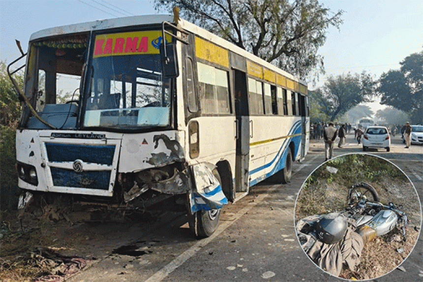 थाना प्रभारी अमरसिंह ने बताया कि यह निजी बस हनुमानगढ़ जंक्शन (Hanumangarh Junction Bus) से संगरिया होते हुए हरियाणा के डबवाली की ओर जा रही थी। आज पूर्वाह्न करीब नौ बजे मानकसर गांव (Manaksar village) के समीप जुनेजा होटल (Juneja Hotel) के पास बस चालक ने विपरीत दिशा से अचानक सामने आयी एक मोटरसाइकिल को बचाने का प्रयास किया तो बस अनियंत्रित होकर सड़क पर पलट गई। इस दौरान मोटरसाइकिल बस की चपेट में आ गयी, उसमें सवार दोनों व्यक्तियों की मौके पर मौत हो गई।