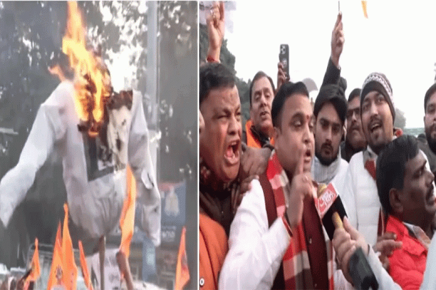 प्रदर्शनकारियों ने बांग्लादेश के अंतरिम प्रधानमंत्री यूनुस खान और कट्टरपंथी तत्वों का पुतला दहन कर अपना विरोध दर्ज कराया। इस दौरान नारेबाजी करते हुए उन्होंने बांग्लादेश में हिंदू अल्पसंख्यकों पर हो रहे कथित उत्पीड़न पर तत्काल रोक लगाने की मांग की। प्रदर्शन में शामिल नेताओं और कार्यकर्ताओं का कहना था कि बांग्लादेश में हिंदू समुदाय के खिलाफ लगातार हिंसा और भेदभाव की खबरें सामने आ रही हैं, जो गंभीर चिंता का विषय हैं।