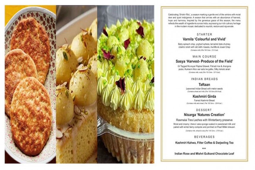 ITC ग्रुप के शेफ़ ने यह खाना शिशिर ऋतु से इंस्पिरेशन लेकर बनाया था — यह साल का वह समय है जो सर्दियों के खत्म होने का इशारा करता है, "नम ओस और आराम के साथ" और "बहुत सारी फ़सल, उम्मीद और मेलजोल के आने" का जश्न मनाता है।