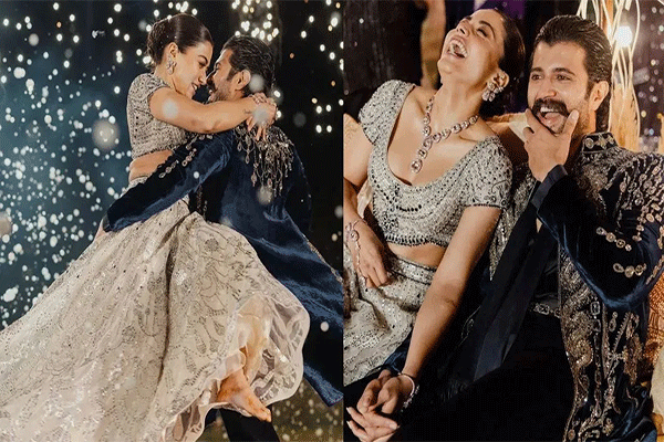 Rashmika Vijay Sangeet Function : पॉपुलर कपल, एक्ट्रेस रश्मिका मंदाना और एक्टर विजय देवरकोंडा अपनी शादी को लेकर सुर्खियों में हैं। पिछले महीने, यानी 26 फरवरी को कपल ने उदयपुर में दो अलग-अलग रीति-रिवाजों से शादी की। उसके बाद, वे पहली बार पब्लिक में एक साथ दिखे और तहलका मचा दिया। अब, अपनी शादी के पांच दिन बाद, रश्मिका और विजय ने अपने संगीत की तस्वीरें अपने फैंस के साथ शेयर की हैं।